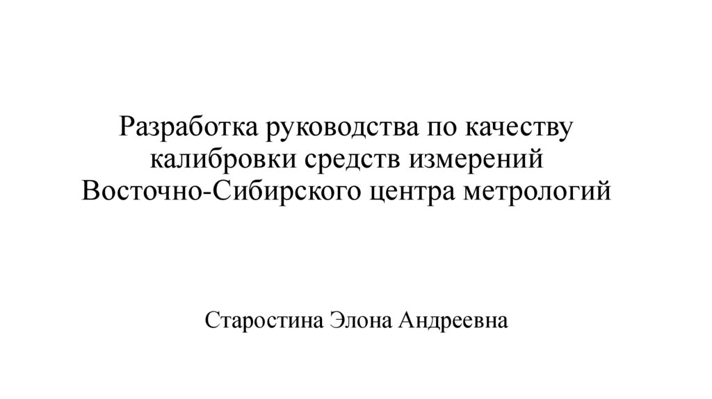 1. Разработка руководства по качеству калибровки средств измерений Восточно-Сибирского центра метрологий Старостина Элона