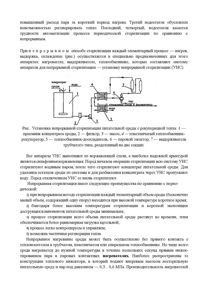 Непрерывная стерилизация имеет следующие преимущества по сравнению с периодической: