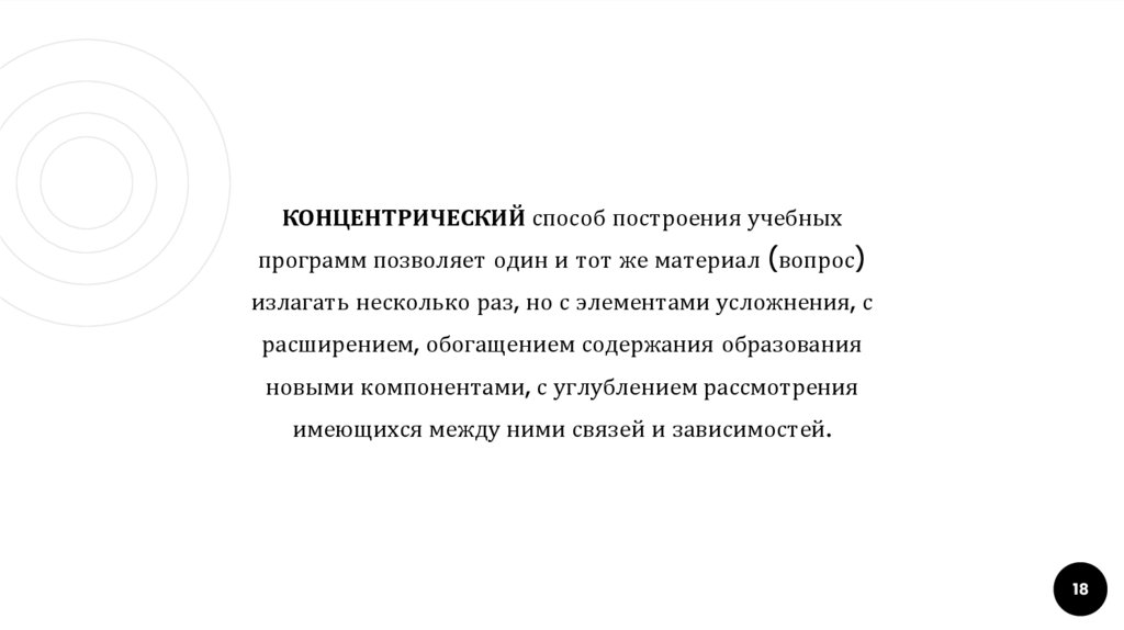 КОНЦЕНТРИЧЕСКИЙ способ построения учебныхпрограмм позволяет один и тот же материал (вопрос)
