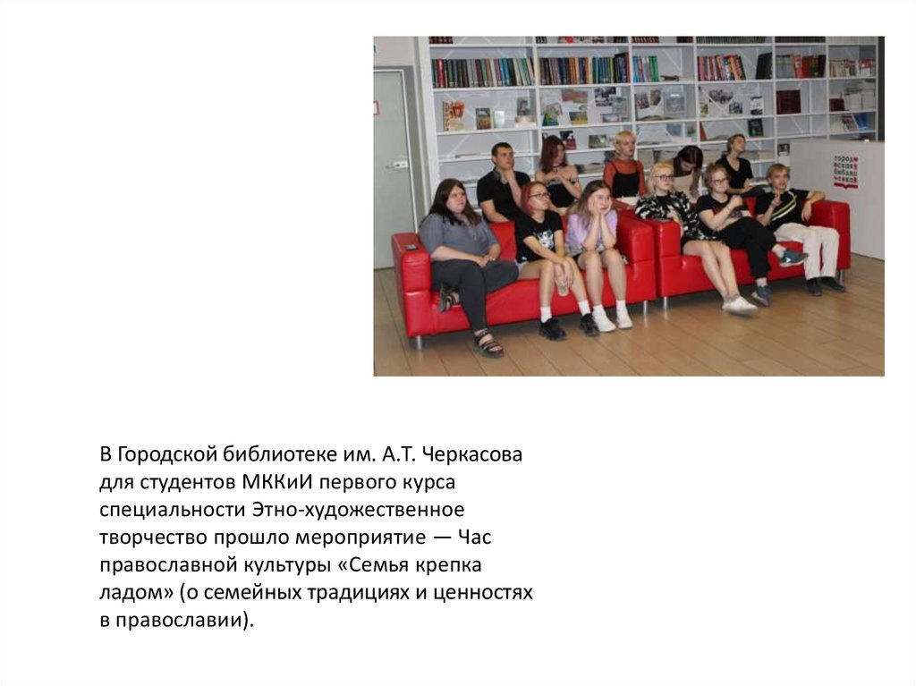 В Городской библиотеке им. А.Т. Черкасовадля студентов МККиИ первого курса