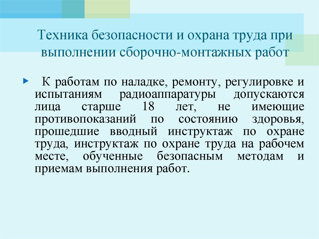 Техника безопасности и охрана труда привыполнении сборочно-монтажных работ