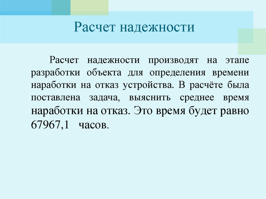Расчет надежностиРасчет надежности производят на этапе