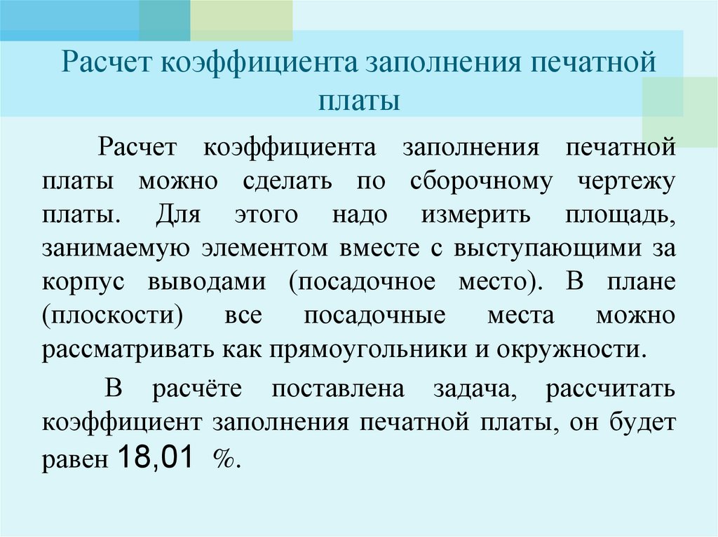 Расчет коэффициента заполнения печатнойплаты