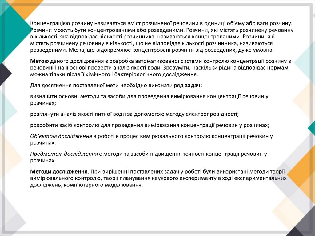 Предметом дослідження є методи та засоби підвищення точності концентрації речовин у