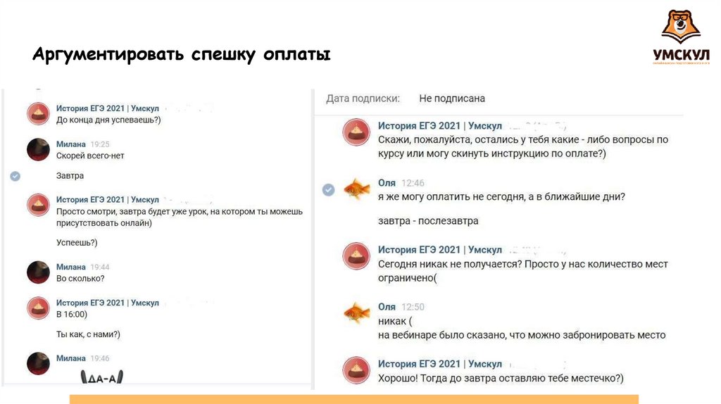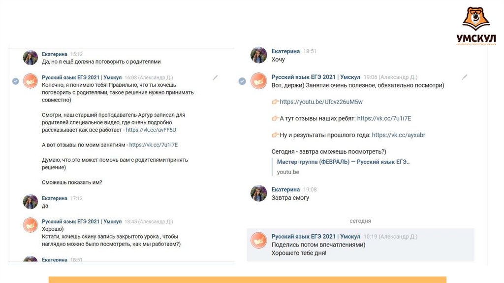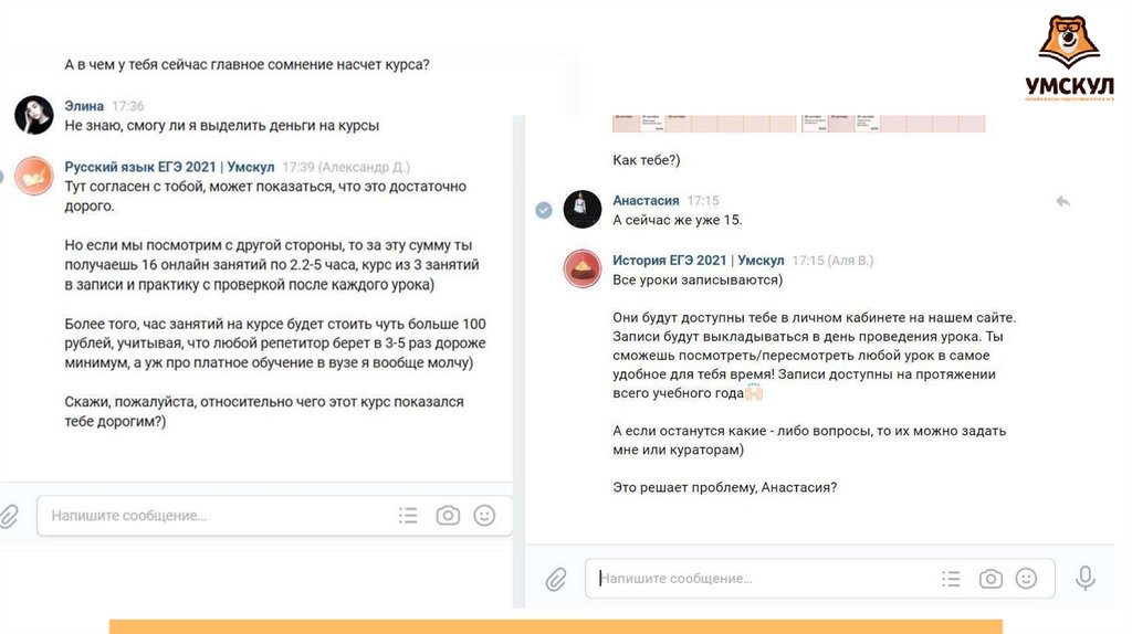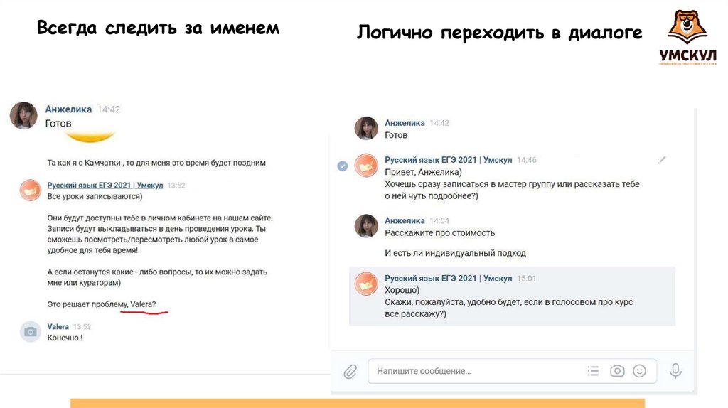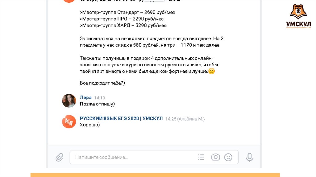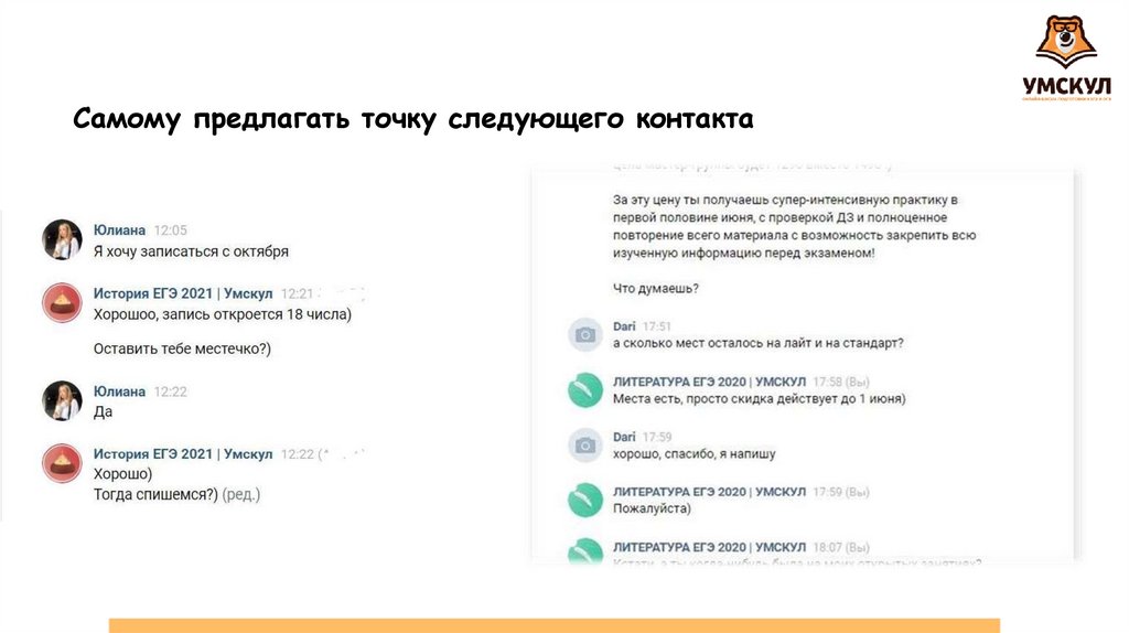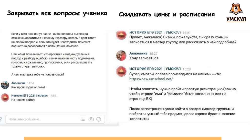 Закрывать все вопросы ученикаСкидывать цены и расписания