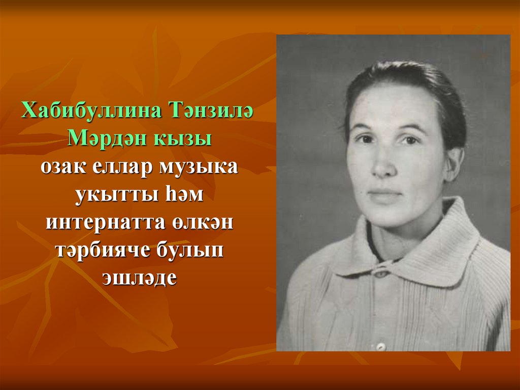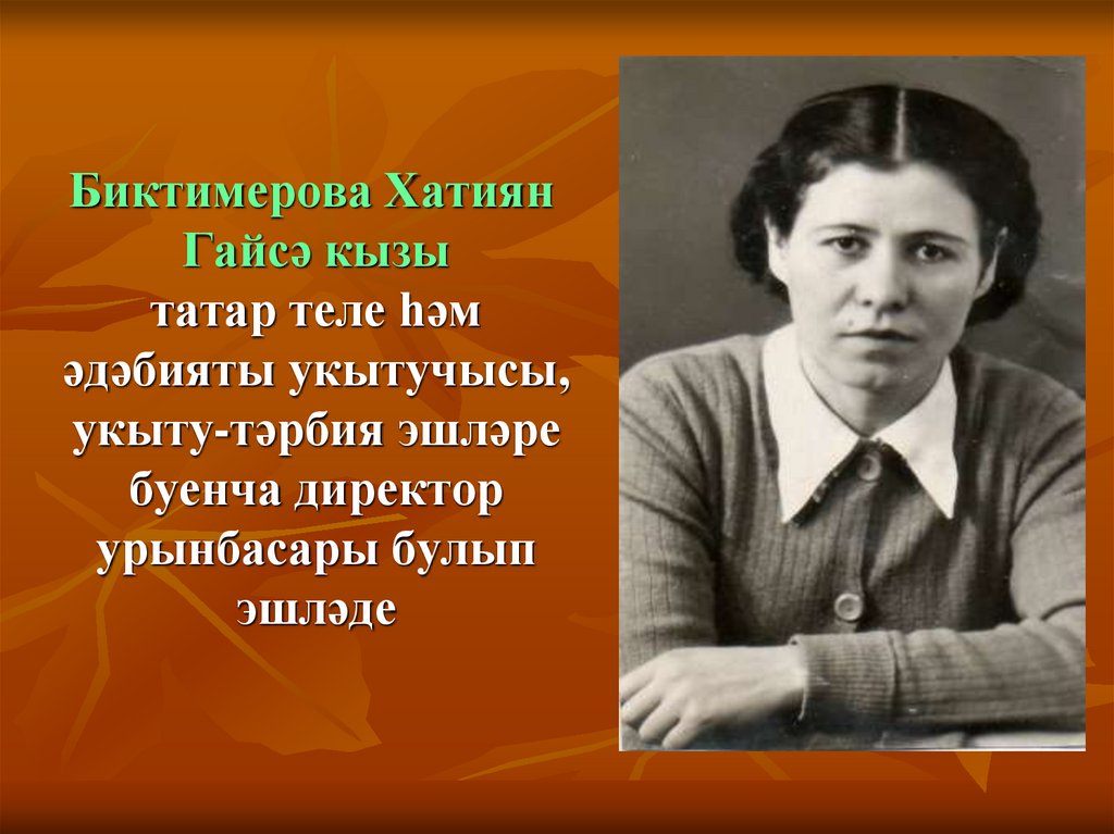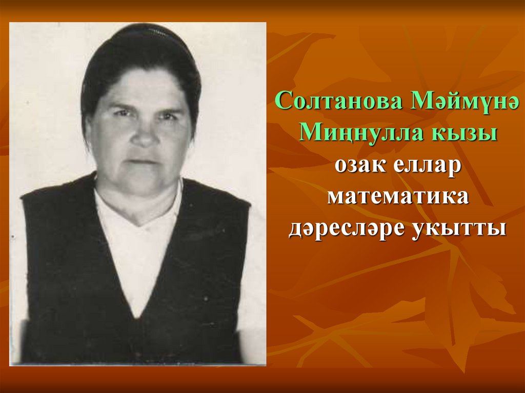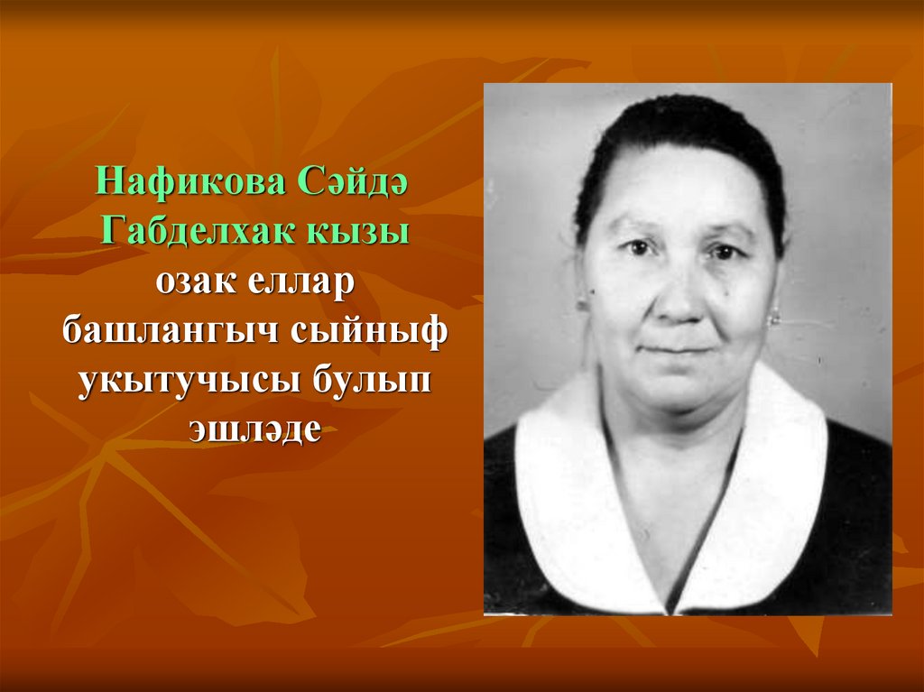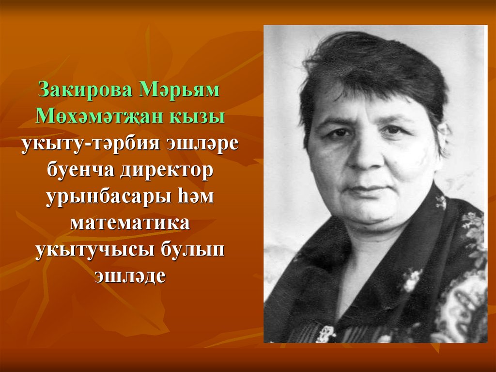 25. Исмәгыйлова Зәйтүнә Абдулла кызы озак еллар татар теле һәм әдәбияты укытучысы булып эшләде