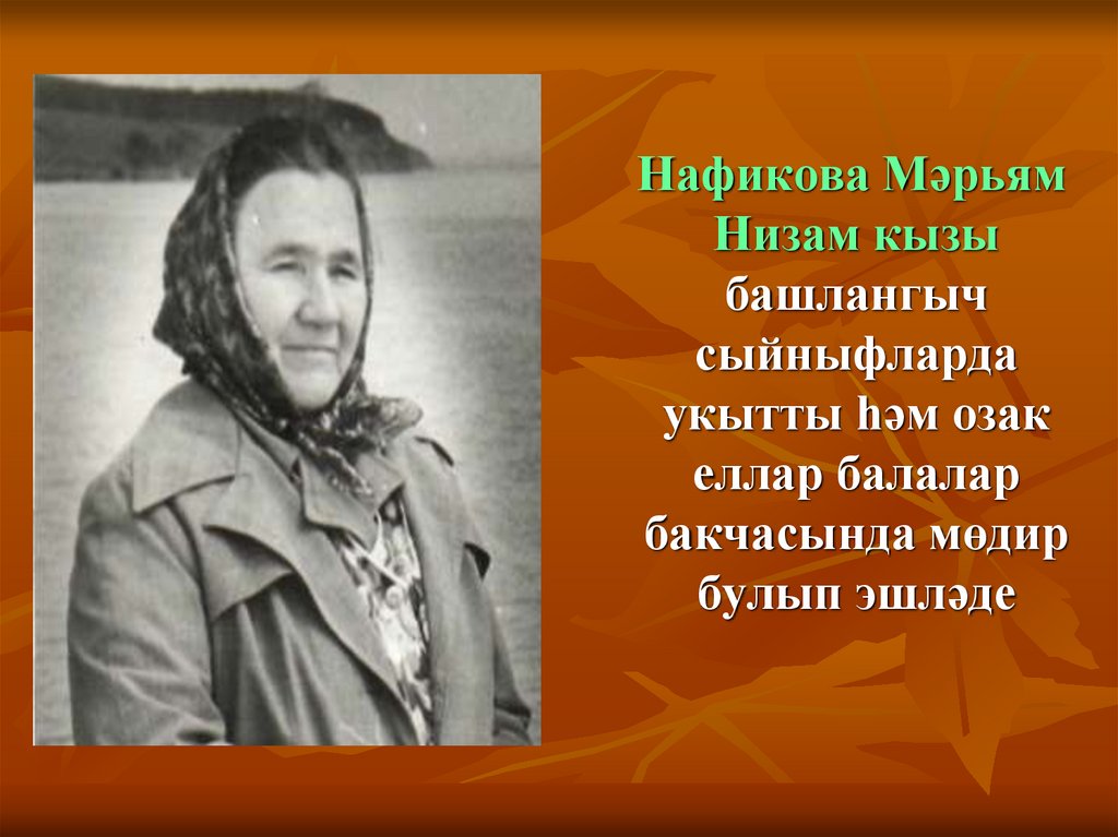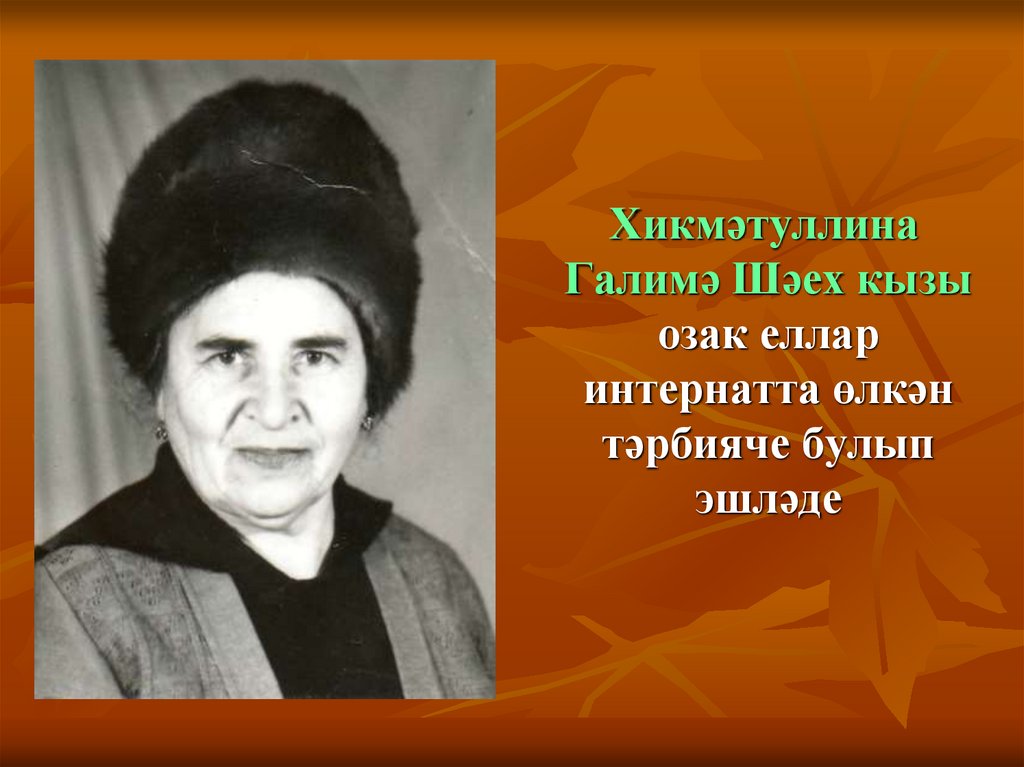 13. Хөснетдинова Хәлимә Муллакай кызы озак еллар мәктәптә башлангыч сыйныфлар укытты