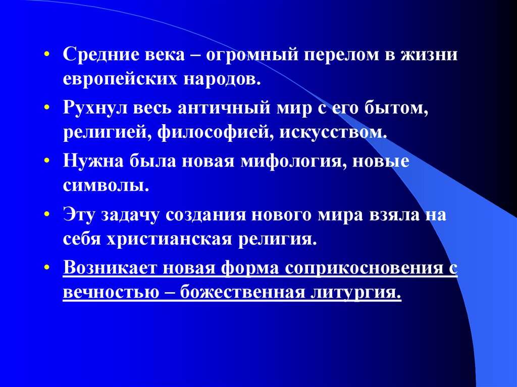 • Переход от античности к средневековомумиропониманию – это переход вовнутрь