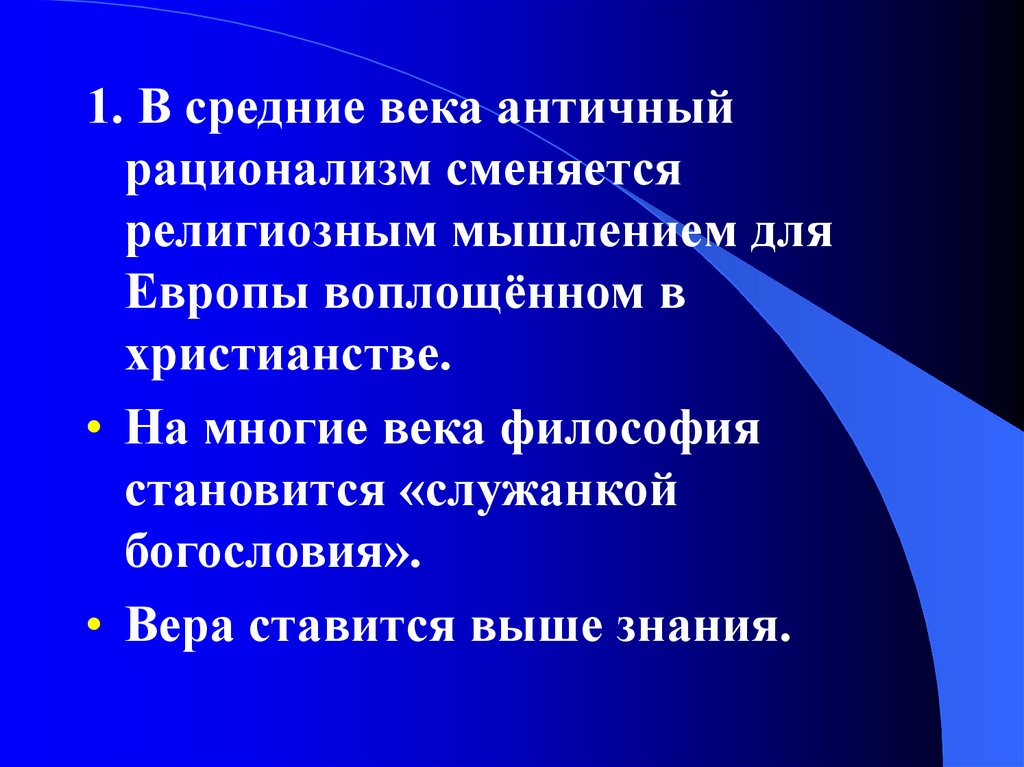 • Схоластика (VI-XV вв.) – зрелое исистематическое учение о Боге,
