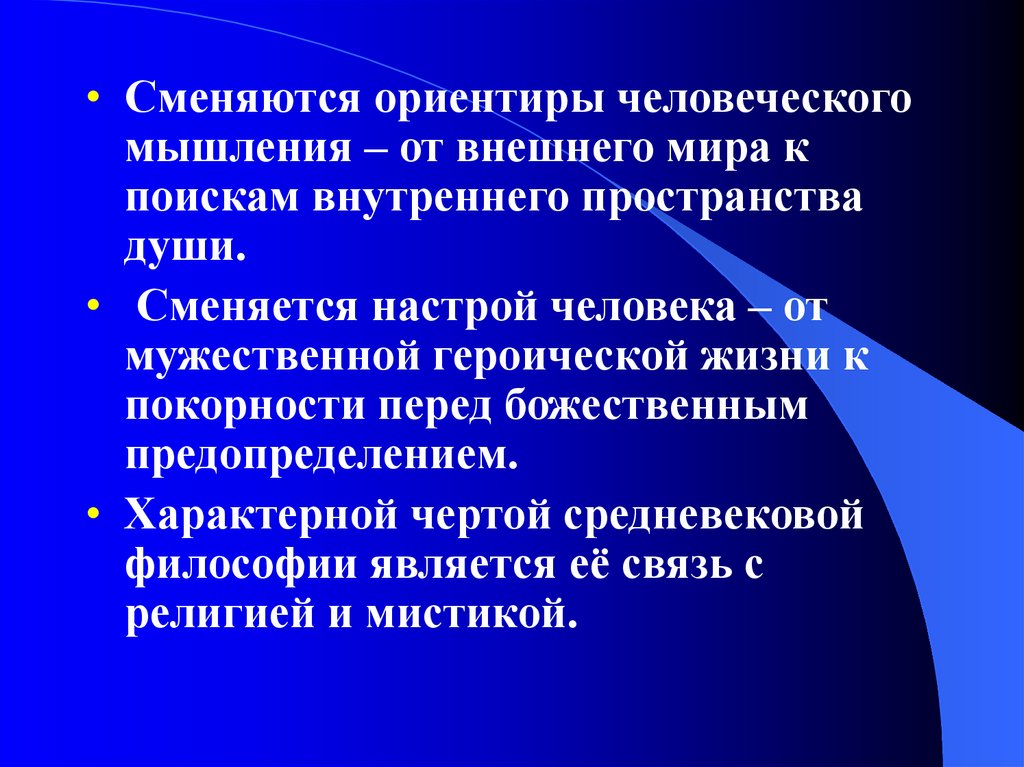 • Сменяются ориентиры человеческогомышления – от внешнего мира к