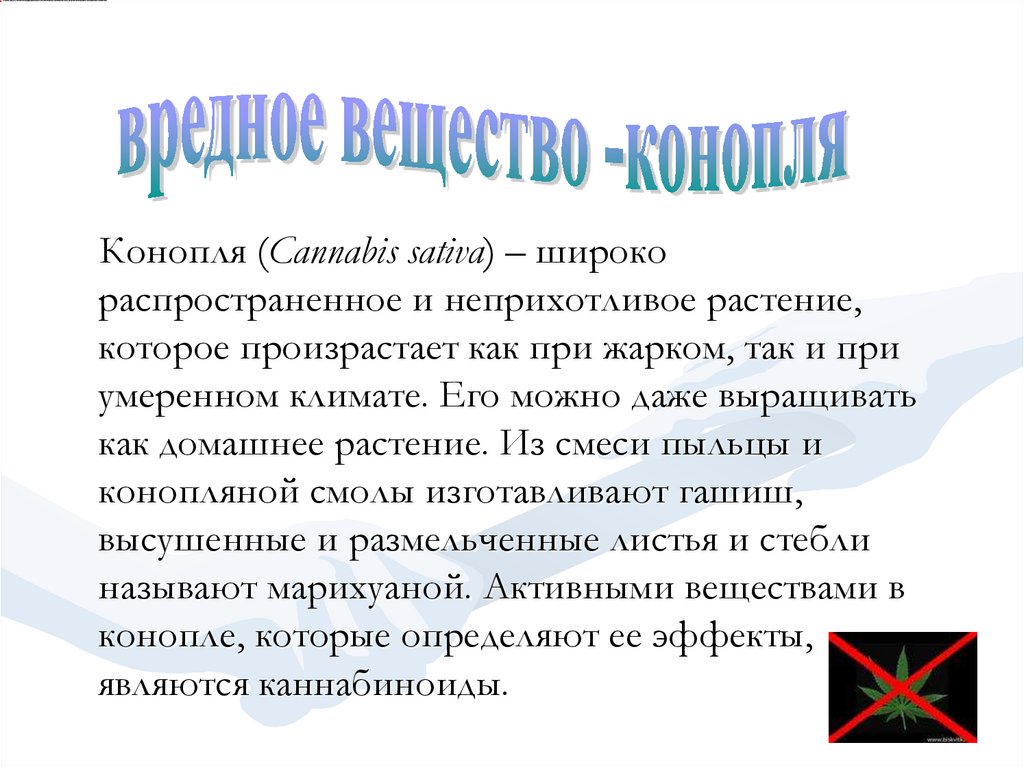 называют марихуаной. Активными веществами в