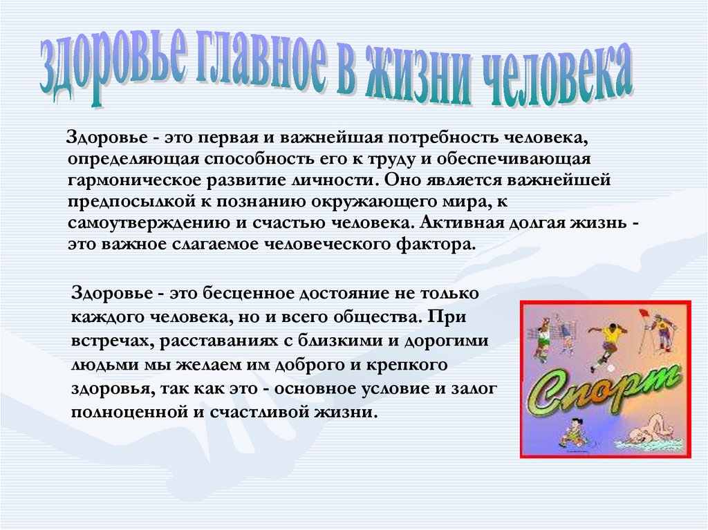 здоровья, так как это - основное условие и залог