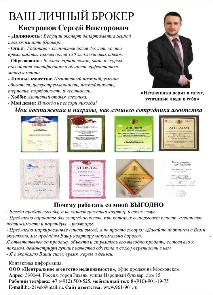 ВАШ ЛИЧНЫЙ БРОКЕРЕвстропов Сергей Викторович