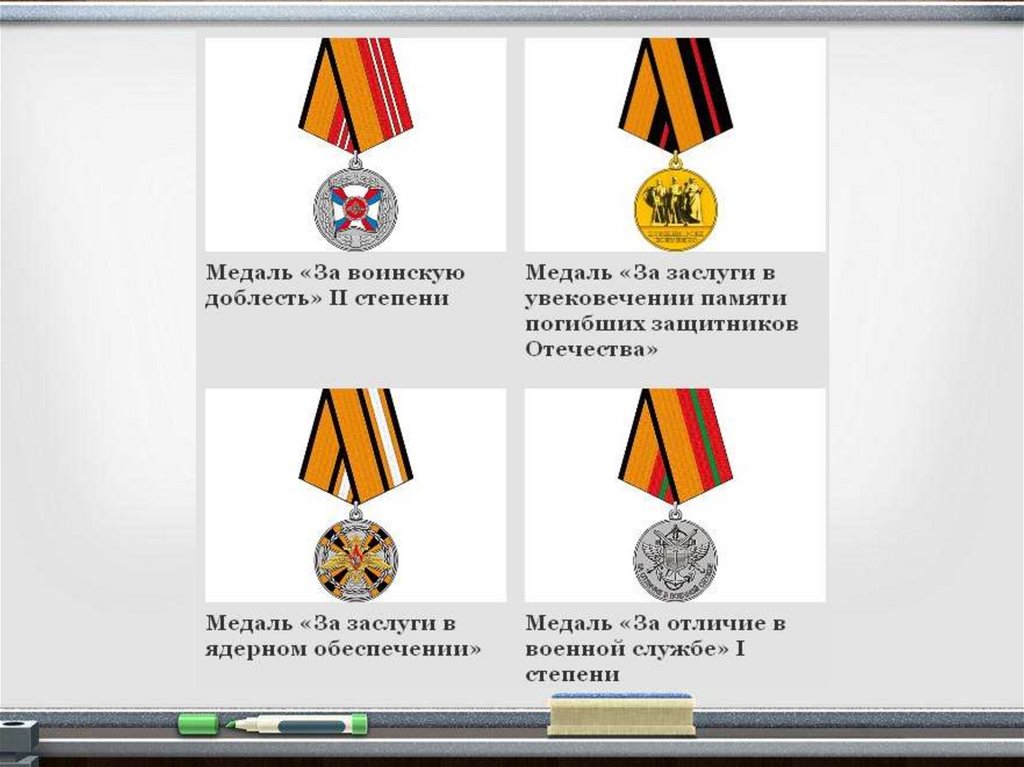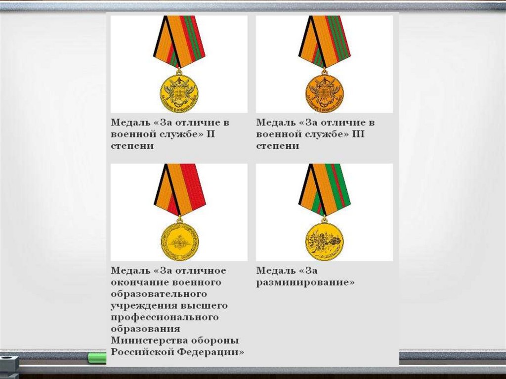 в воинской службе», «За отличную службу по охране общественного порядка», «За отвагу на пожаре»,