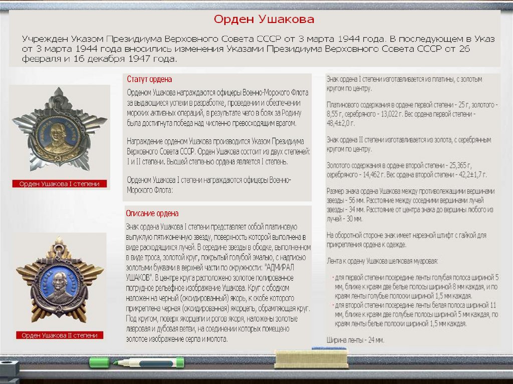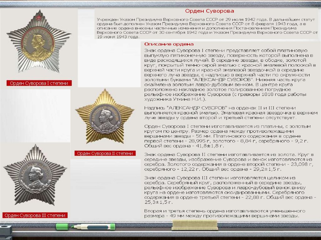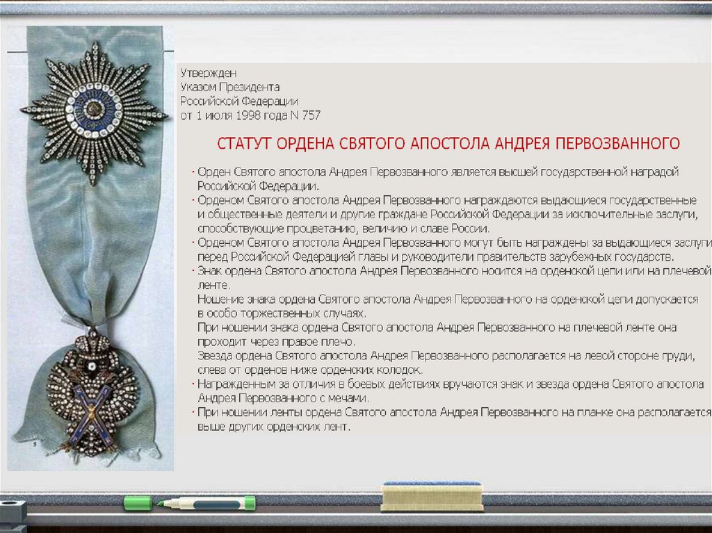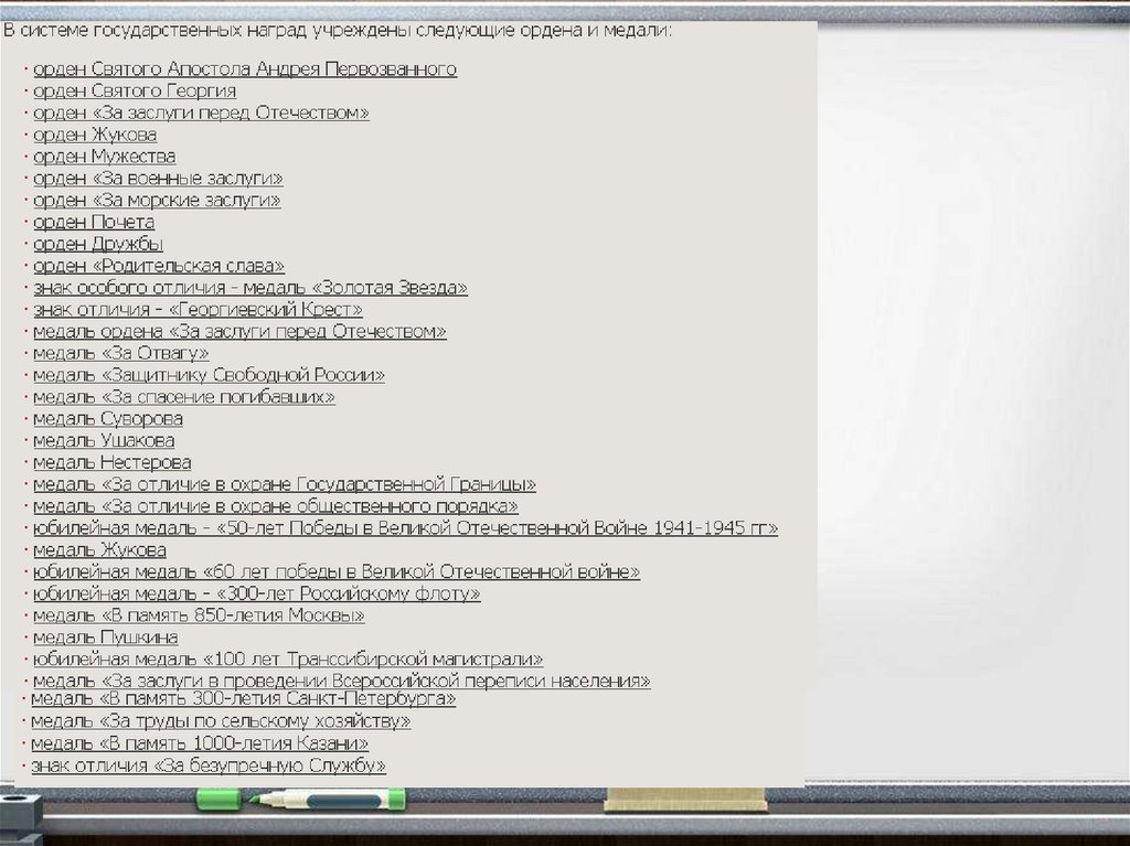 Российской Федерации ордена Суворова, Ушакова, Кутузова, Нахимова, Александра Невского.
