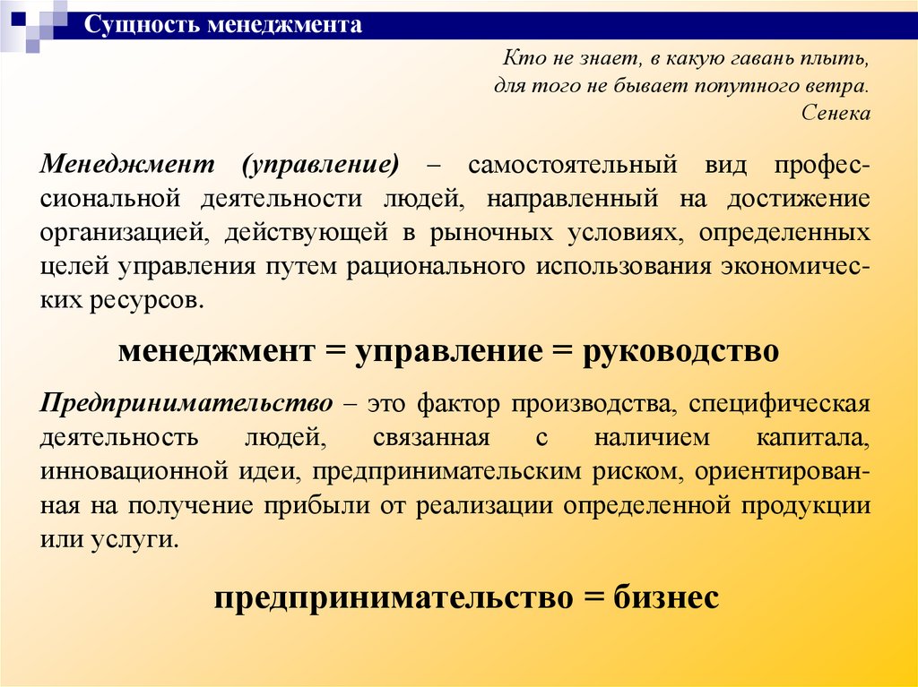 Сущность менеджментаКто не знает, в какую гавань плыть,