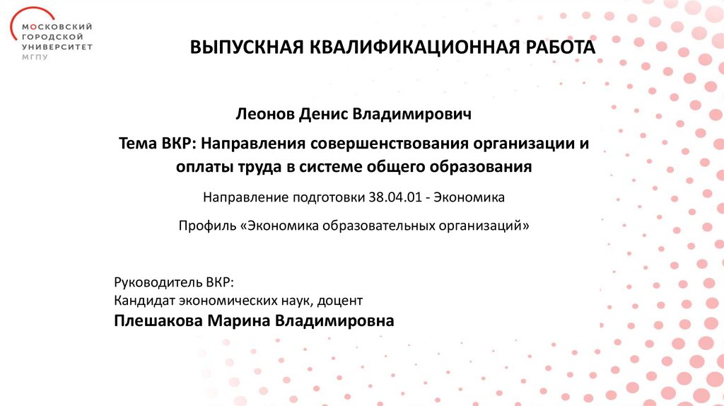 ВЫПУСКНАЯ КВАЛИФИКАЦИОННАЯ РАБОТАЛеонов Денис Владимирович