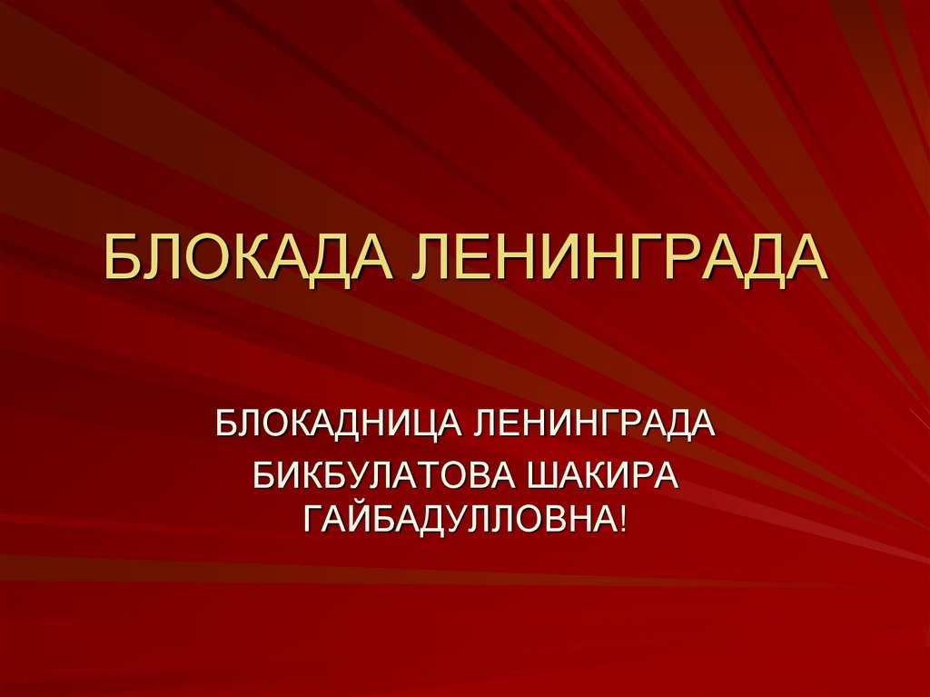 БЛОКАДНИЦА ЛЕНИНГРАДАБИКБУЛАТОВА ШАКИРА