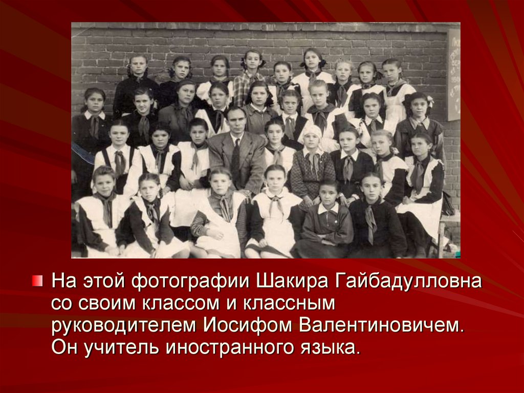На этой фотографии Шакира Гайбадулловнасо своим классом и классным
