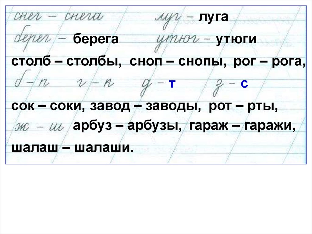 арбуз – арбузы, гараж – гаражи,