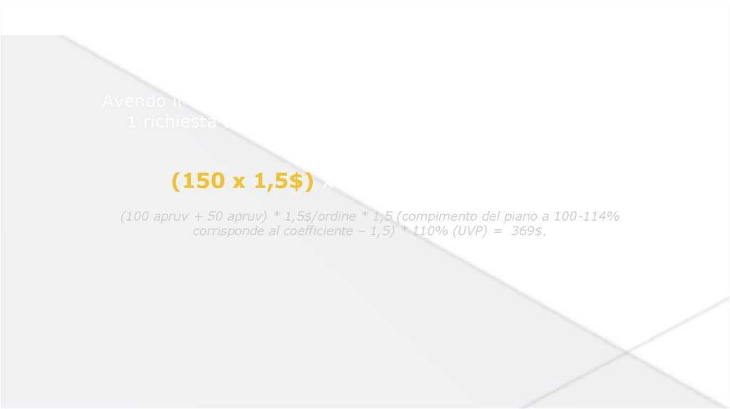 (100 apruv + 50 apruv) * 1,5$/ordine * 1,5 (compimento del piano a 100-114%