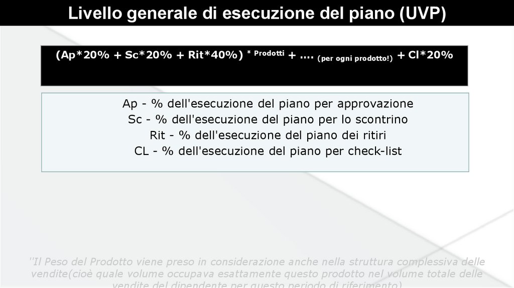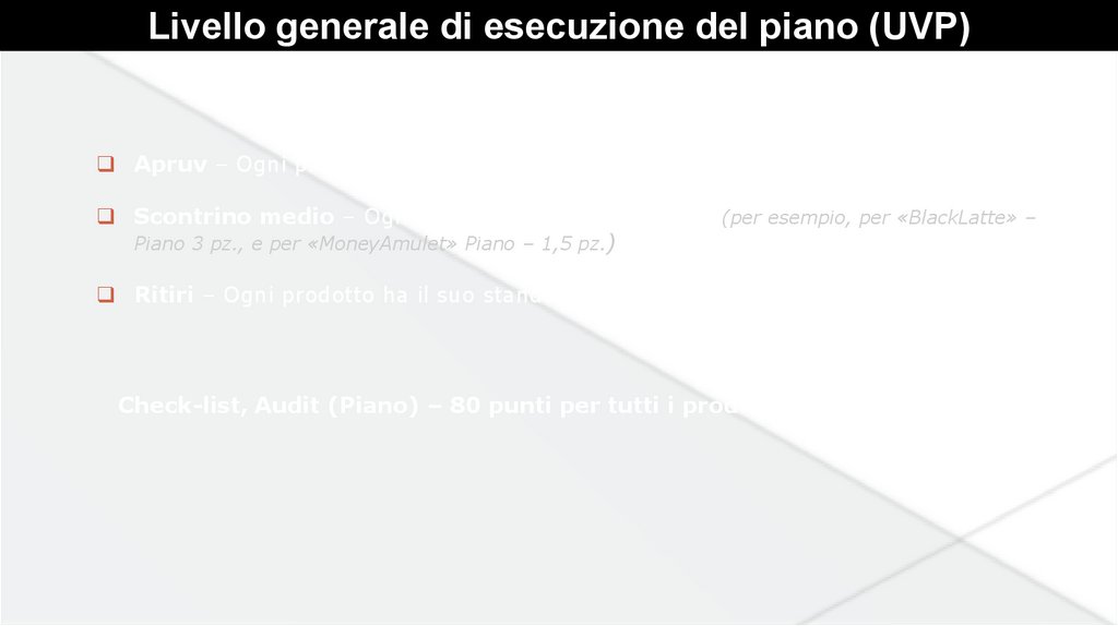 Livello generale di esecuzione del piano (UVP)Apruv – Ogni prodotto ha il suo standart (Piano)