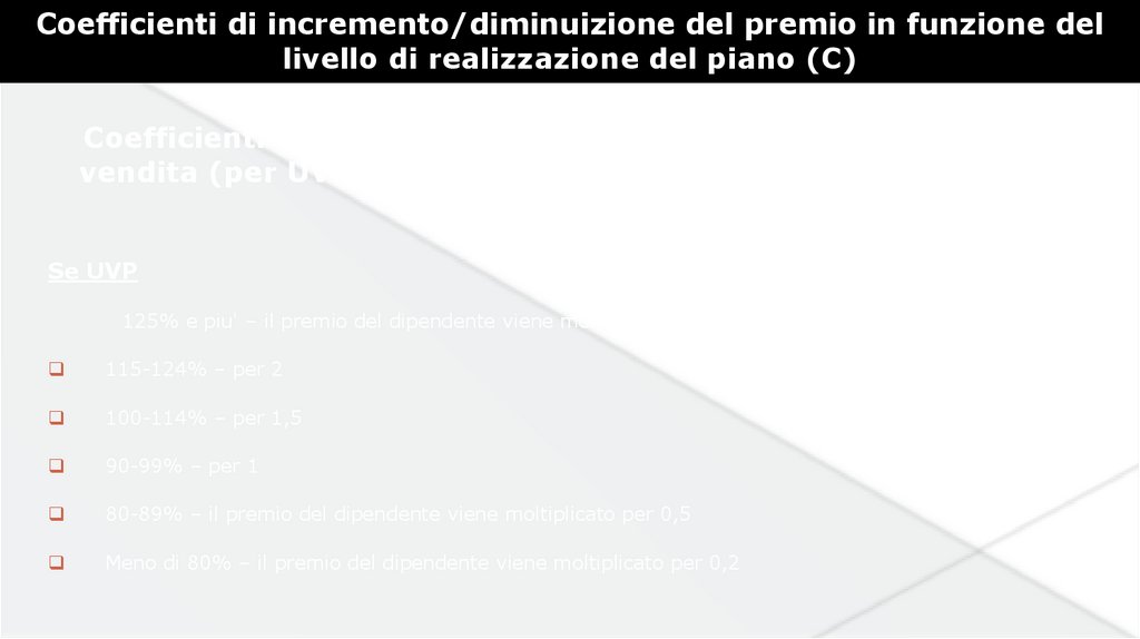Coefficienti di incremento/diminuizione del premio in funzione dellivello di realizzazione del piano (C)