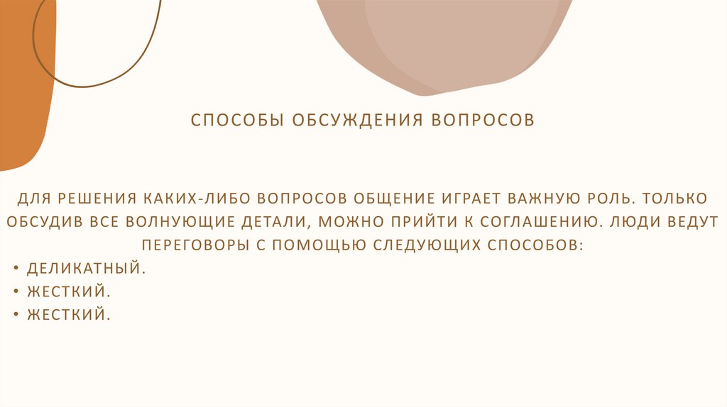 СПОСОБЫ ОБСУЖДЕНИЯ ВОПРОСОВДЛЯ РЕШЕНИЯ КАКИХ -ЛИБО ВОПРОСОВ ОБЩЕНИЕ ИГРАЕТ ВАЖНУЮ РОЛЬ. ТОЛЬКО