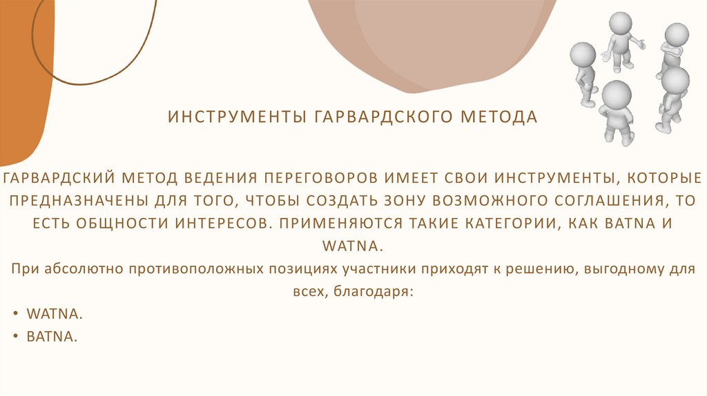 ИНСТРУМЕНТЫ ГАРВАРДСКОГО МЕТОДАГАРВАРДСКИЙ МЕТОД ВЕДЕНИЯ ПЕРЕГОВОРОВ ИМЕЕТ СВОИ ИНСТРУМЕНТЫ, КОТОРЫЕ