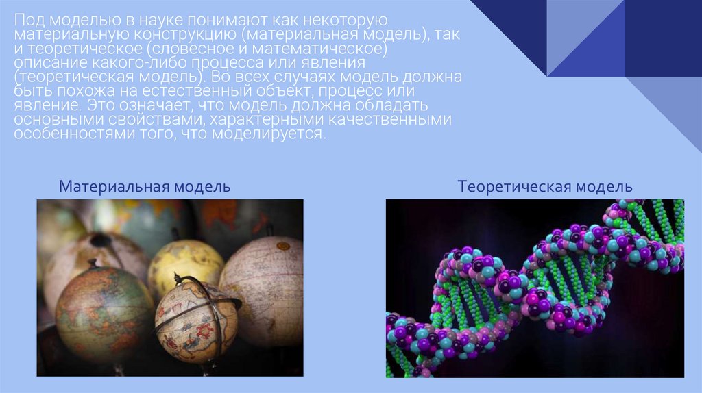 Под моделью в науке понимают как некоторуюматериальную конструкцию (материальная модель), так