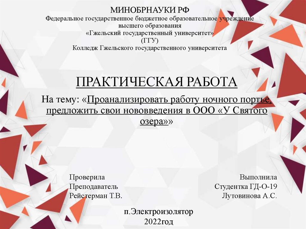 1. МИНОБРНАУКИ РФ Федеральное государственное бюджетное образовательное учреждение высшего образования «Гжельский государственный