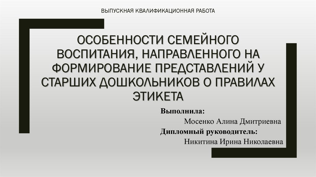 ВЫПУСКНАЯ КВАЛИФИКАЦИОННАЯ РАБОТАОСОБЕННОСТИ СЕМЕЙНОГО