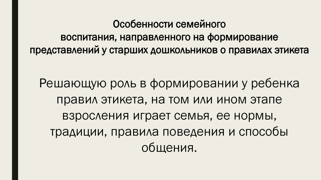 Особенности семейного воспитания, направленного на формирование представлений у старших дошкольников о правилах этикета