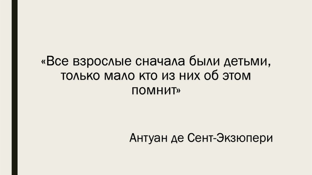 «Все взрослые сначала были детьми,только мало кто из них об этом