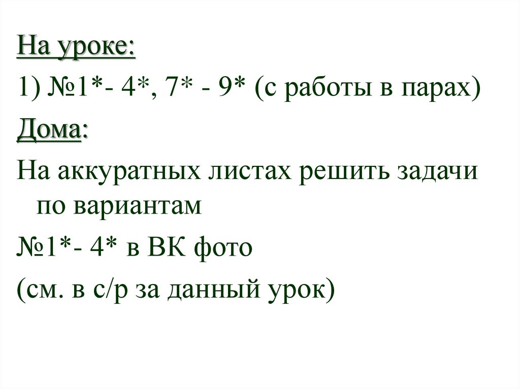На уроке:1) №1*- 4*, 7* - 9* (с работы в парах)