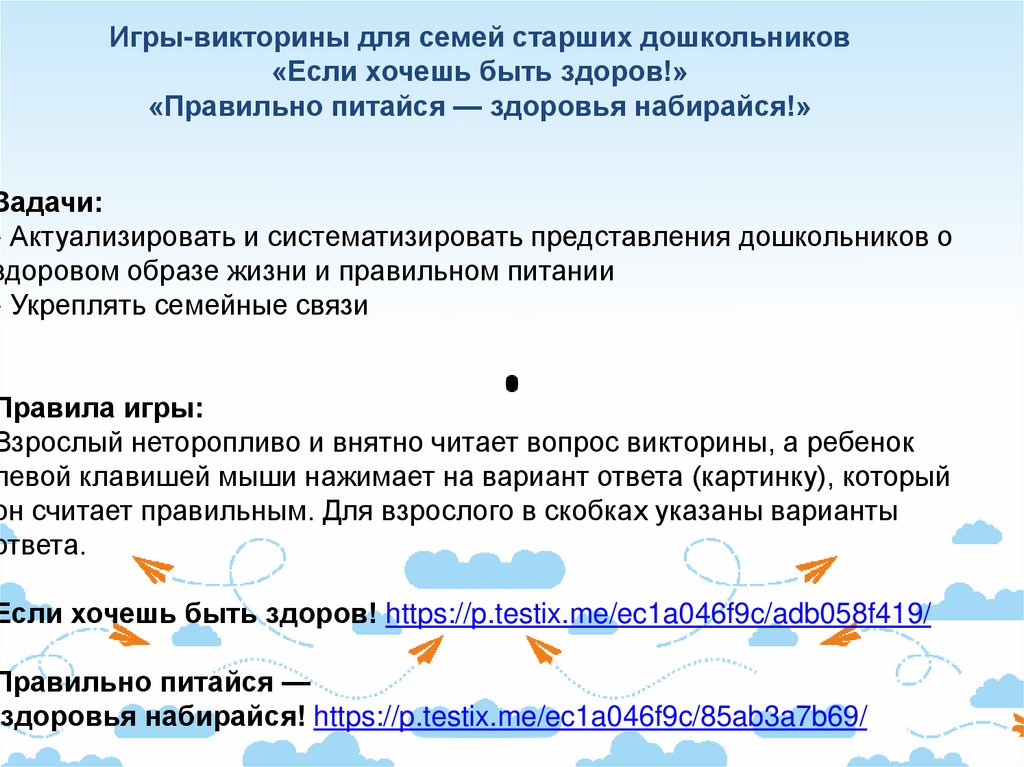 Игры-викторины для семей старших дошкольников«Если хочешь быть здоров!»