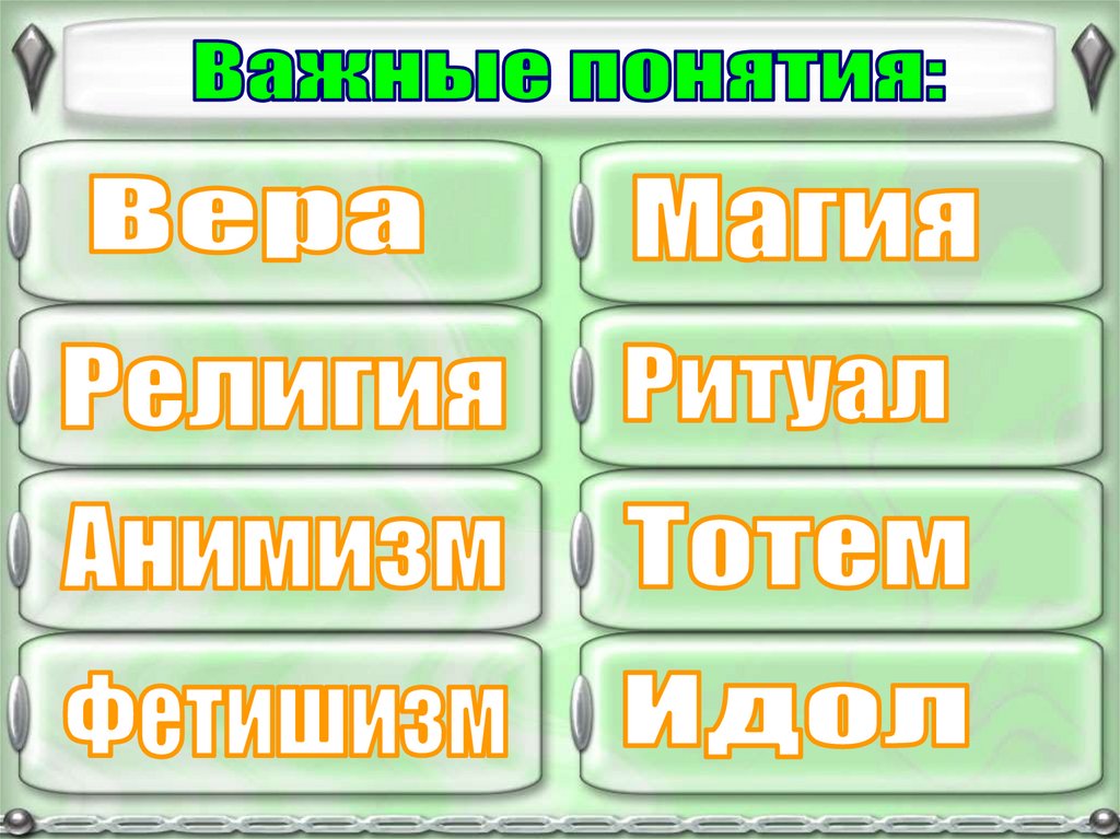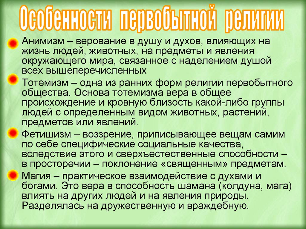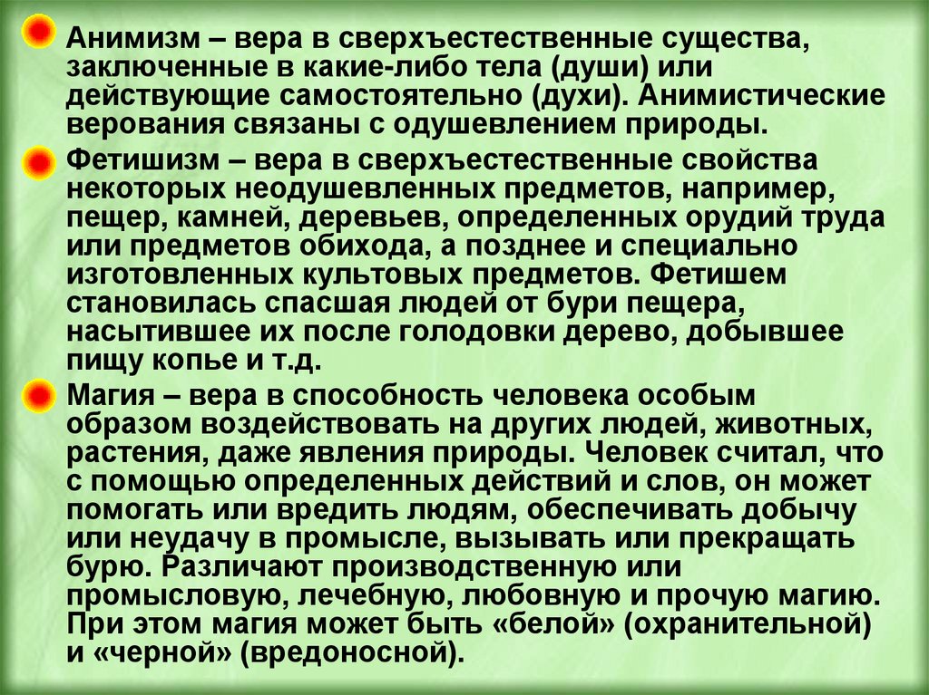 • Анимизм – вера в сверхъестественные существа,заключенные в какие-либо тела (души) или