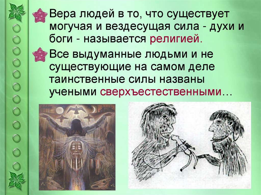 • Вера людей в то, что существуетмогучая и вездесущая сила - духи и