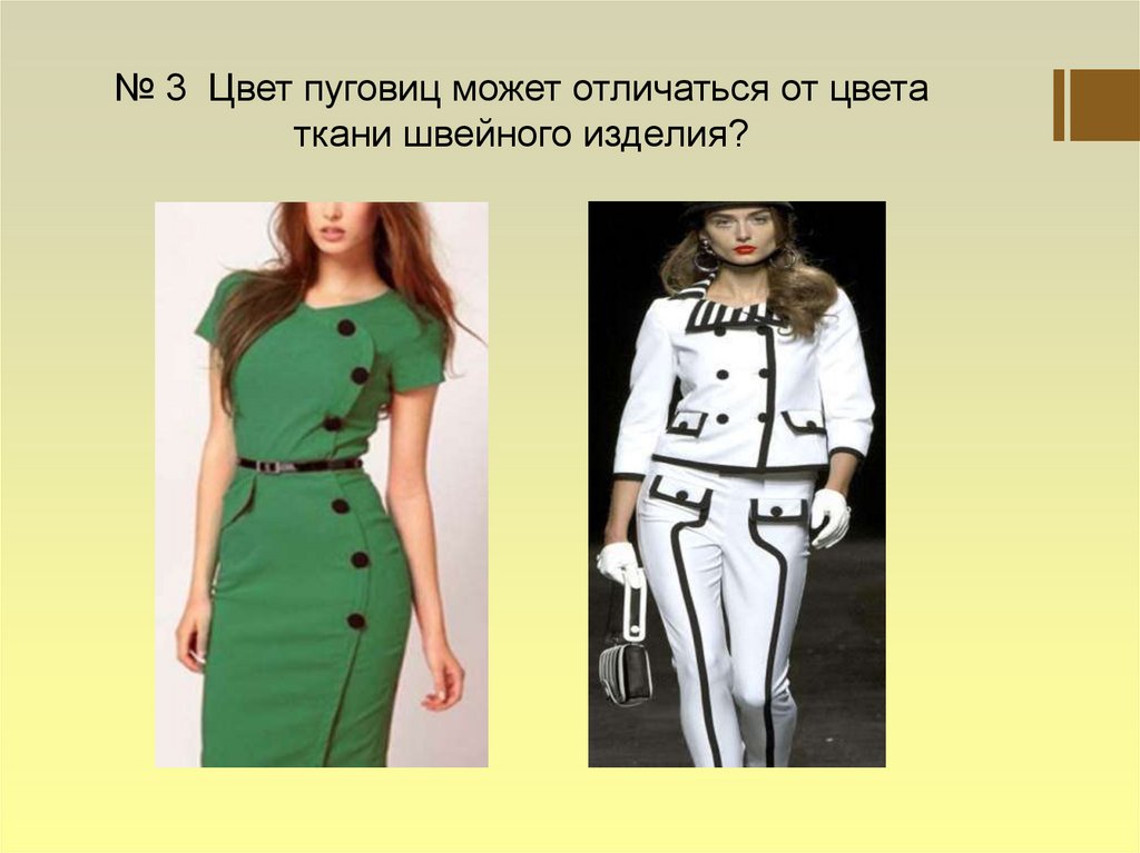 № 3 Цвет пуговиц может отличаться от цветаткани швейного изделия?