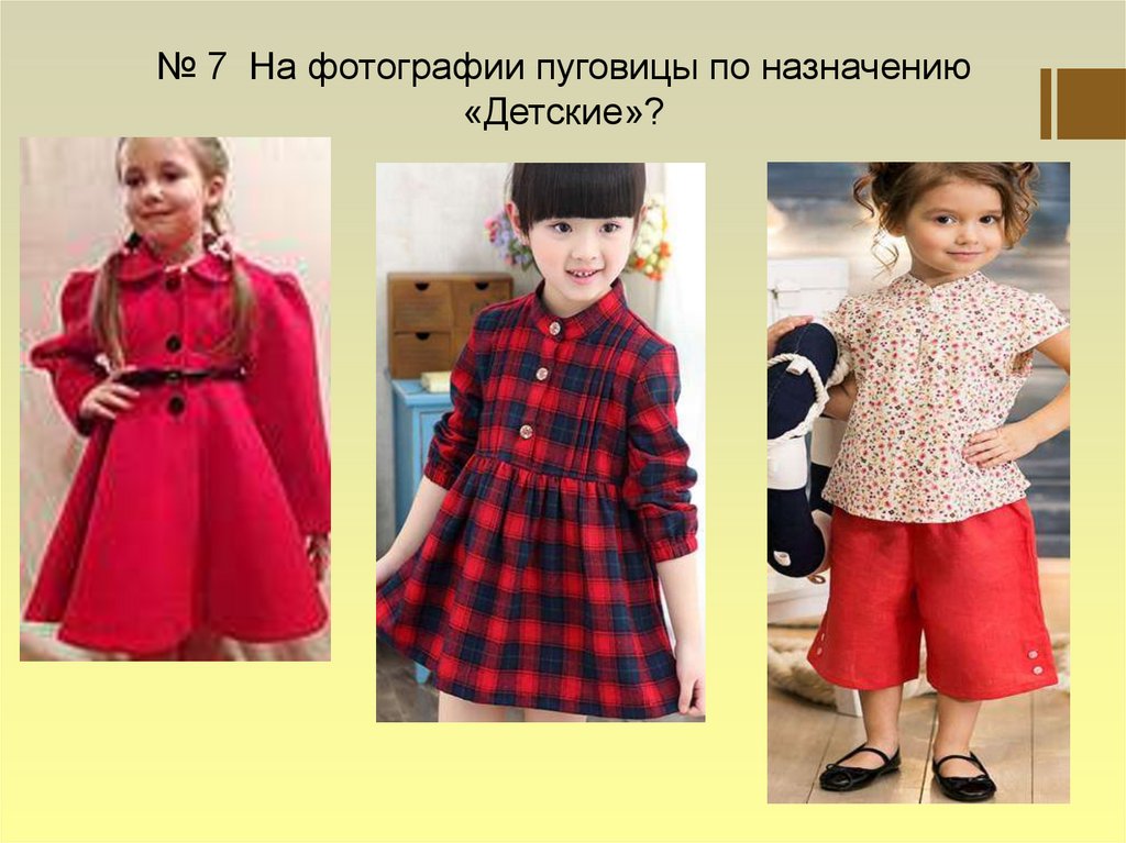 № 7 На фотографии пуговицы по назначению«Детские»?