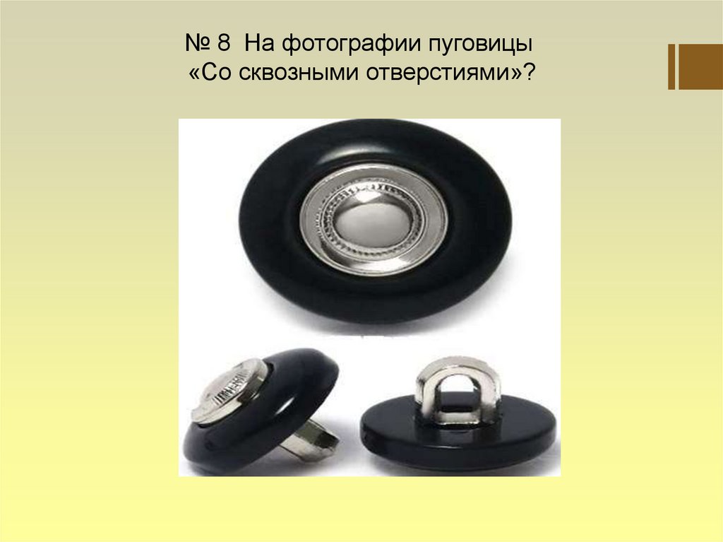 № 8 На фотографии пуговицы«Со сквозными отверстиями»?