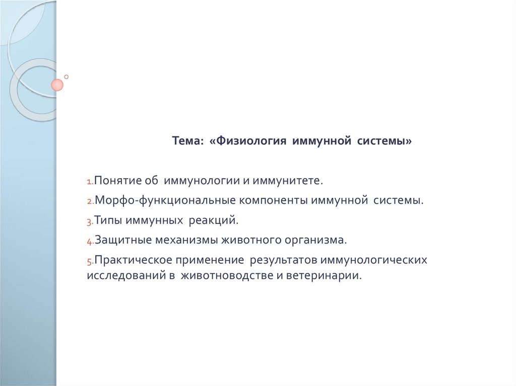 Тема: «Физиология иммунной системы»1.Понятие об
