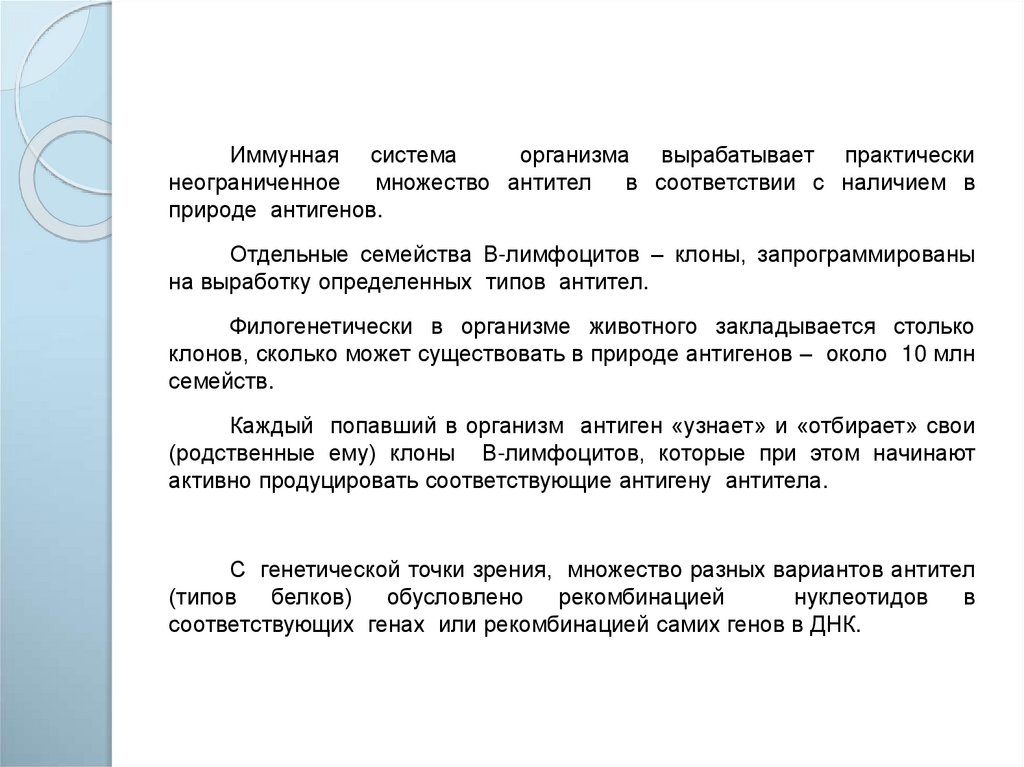С генетической точки зрения, множество разных вариантов антител