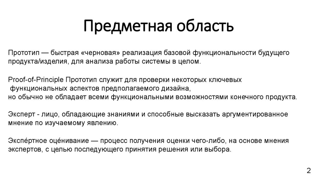 Предметная областьПрототип — быстрая «черновая» реализация базовой функциональности будущего