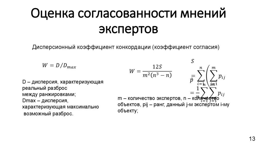 Дисперсионный коэффициент конкордации (коэффициент согласия)