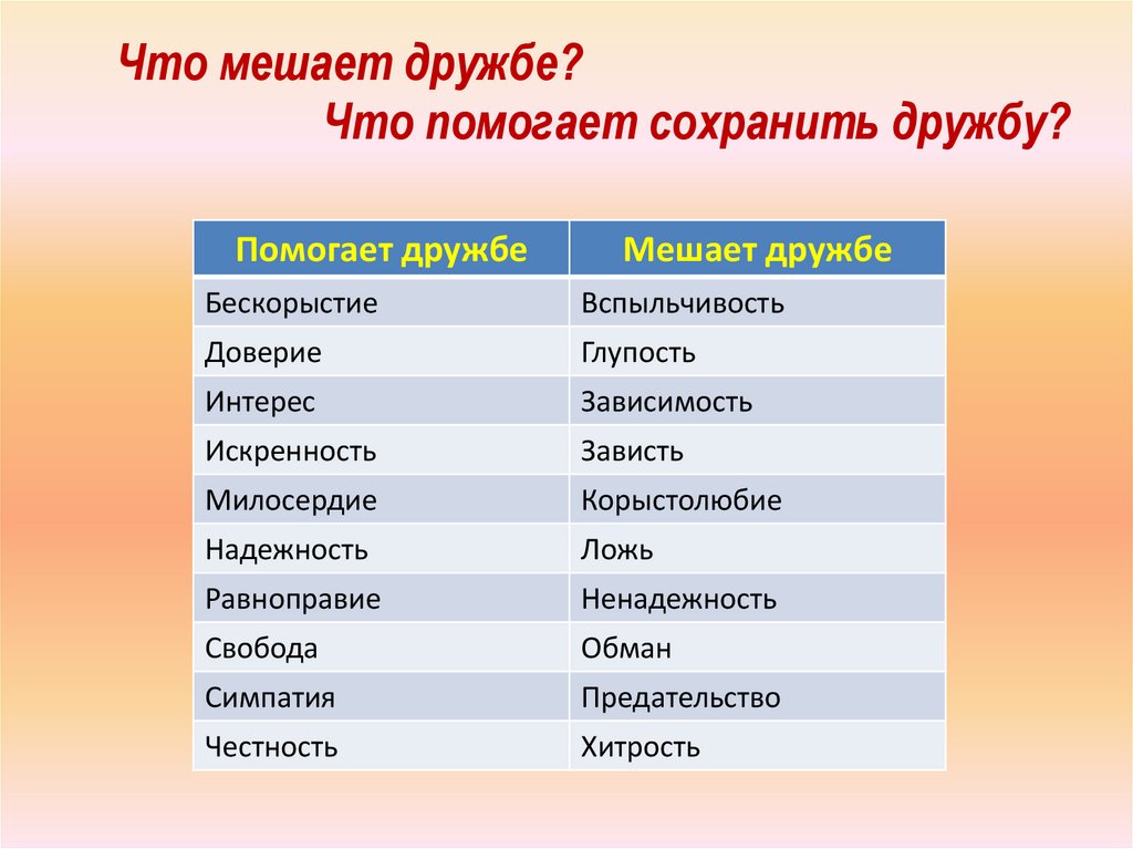 Что мешает дружбе?Что помогает сохранить дружбу?