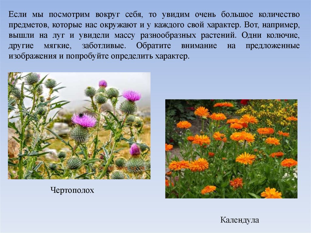 Если мы посмотрим вокруг себя, то увидим очень большое количествопредметов, которые нас окружают и у каждого свой характер. Вот, например,