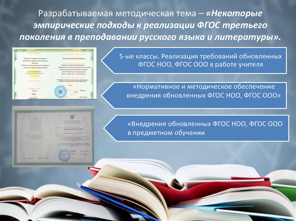Разрабатываемая методическая тема – «Некоторыеэмпирические подходы к реализации ФГОС третьего