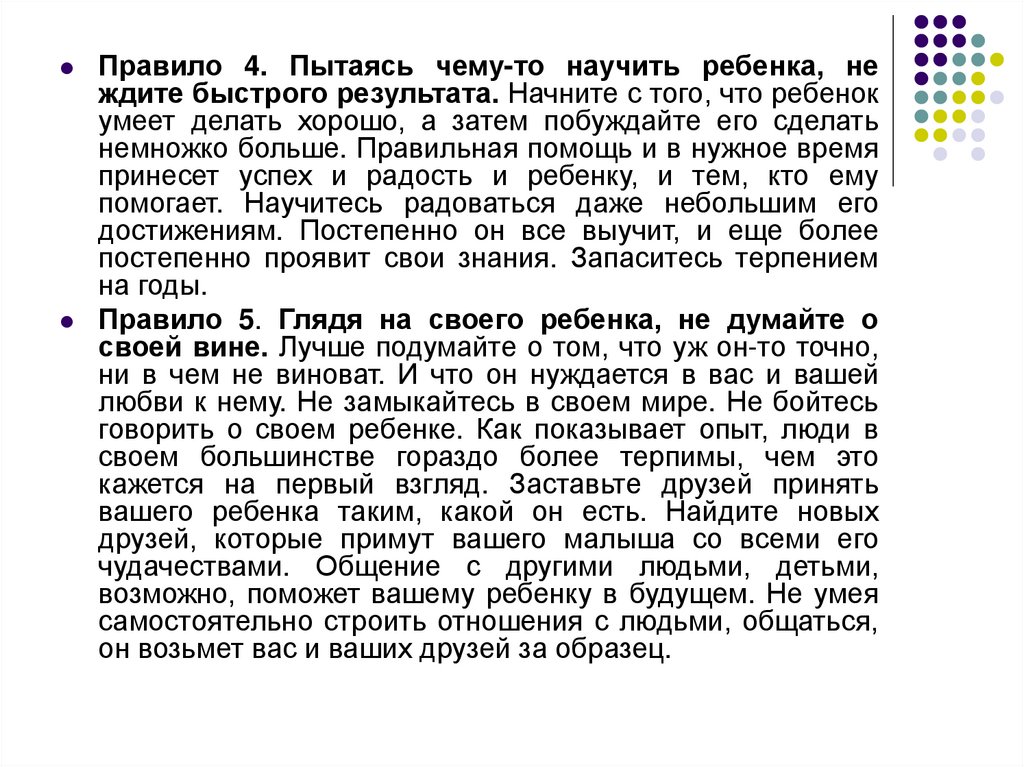 Правило 4. Пытаясь чему-то научить ребенка, неждите быстрого результата. Начните с того, что ребенок