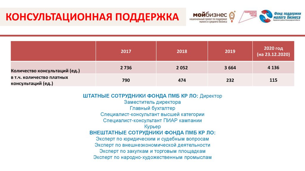 КОНСУЛЬТАЦИОННАЯ ПОДДЕРЖКАКоличество консультаций (ед.)
